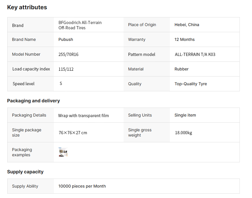 BFGoodrich All-Terrain Off-Road Tires 255/70R16